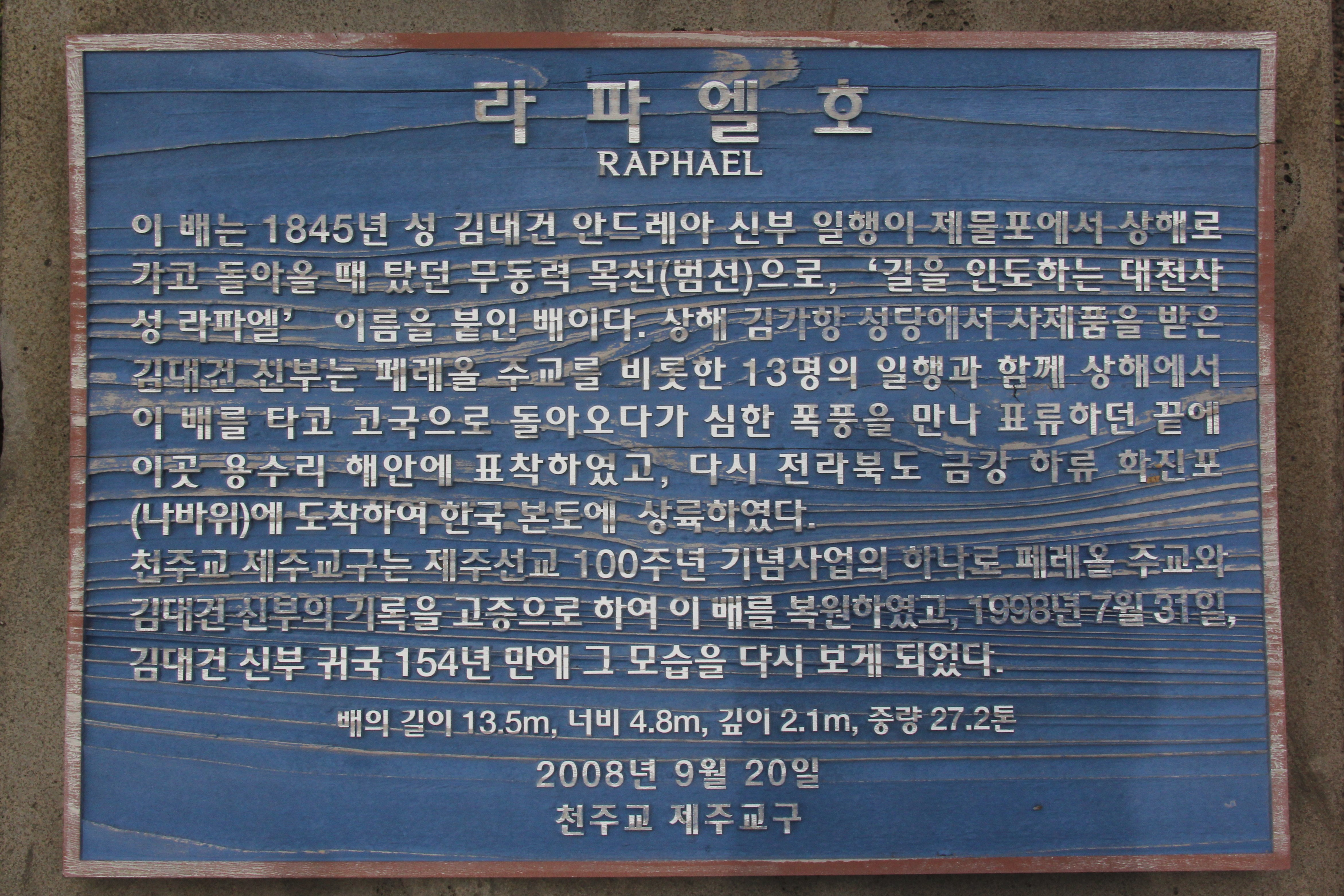 9월28일 용수리 포구에 표착하여 고국 땅에서의 첫 미사를 봉헌했다.