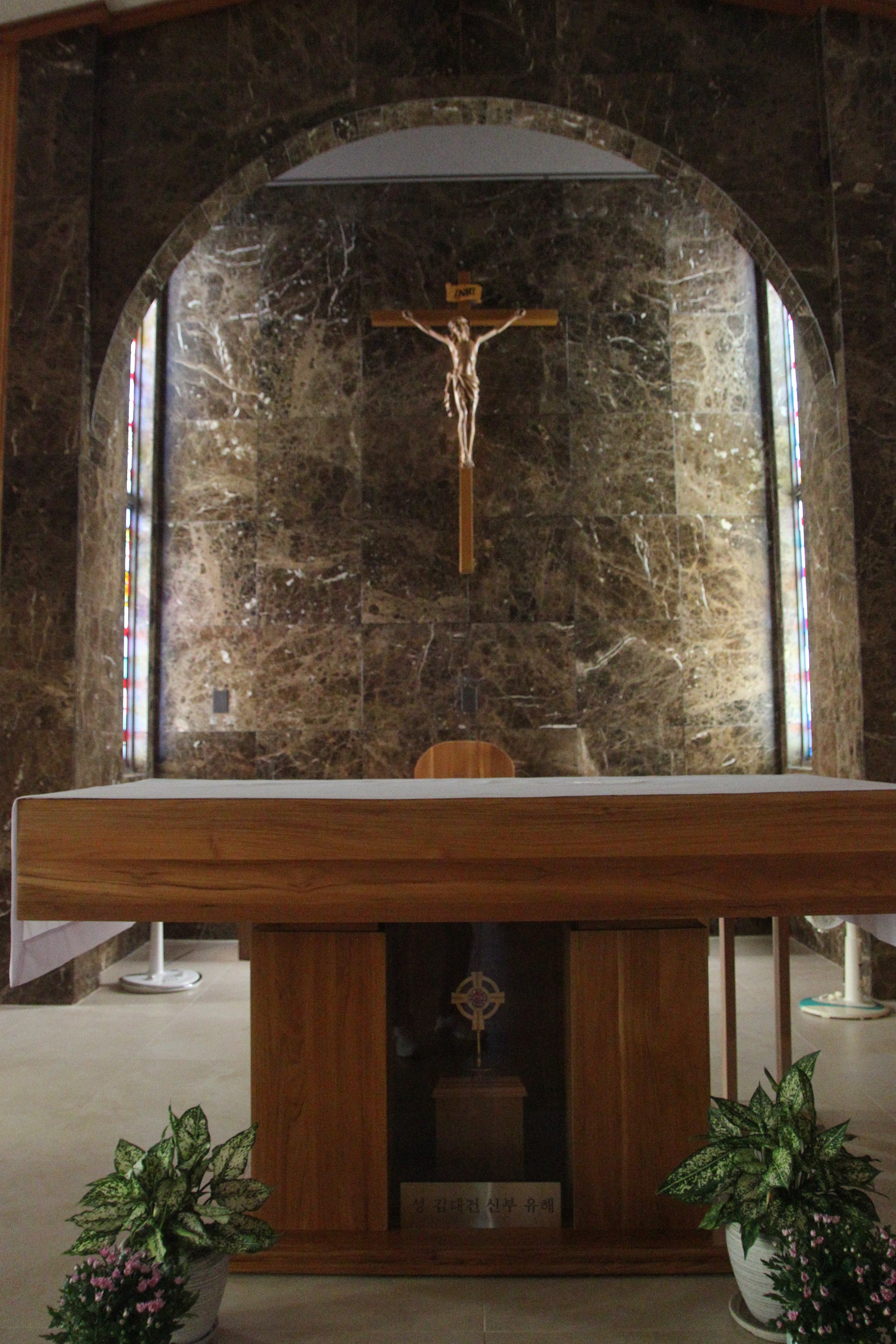 성당 정면은 김신부의 서품식이 거행된 상하이 김가형 성당을 재현하였고