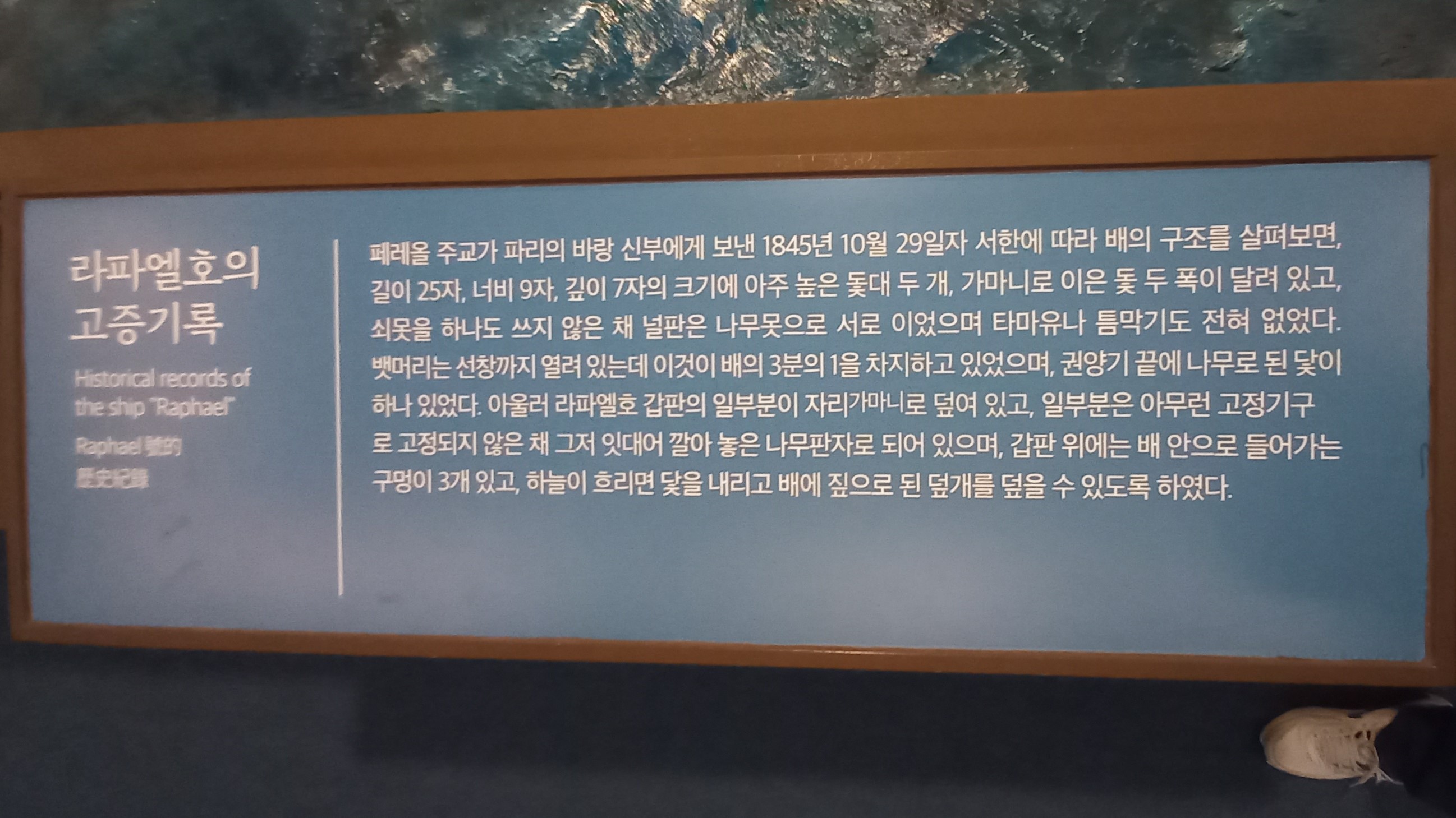 기념관은 거센 파도에 맞서는 '라피엘호'를 형상화했으며